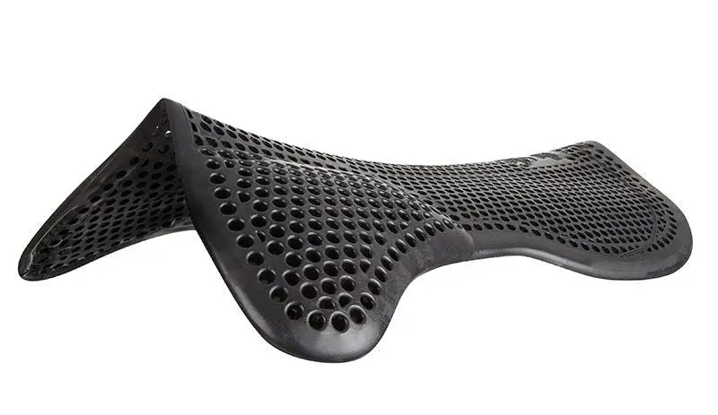 Three-in-one gel saddle pad combines a built in front riser with non slip and shock absorbing propertiesAnatomically moulded gel helps support the saddle in front with low profile ideal for use under close-contact saddles and where the fit is too low over the withers. Unique structure of gel allows natural compression conforming to saddle shape and allowing air to move.