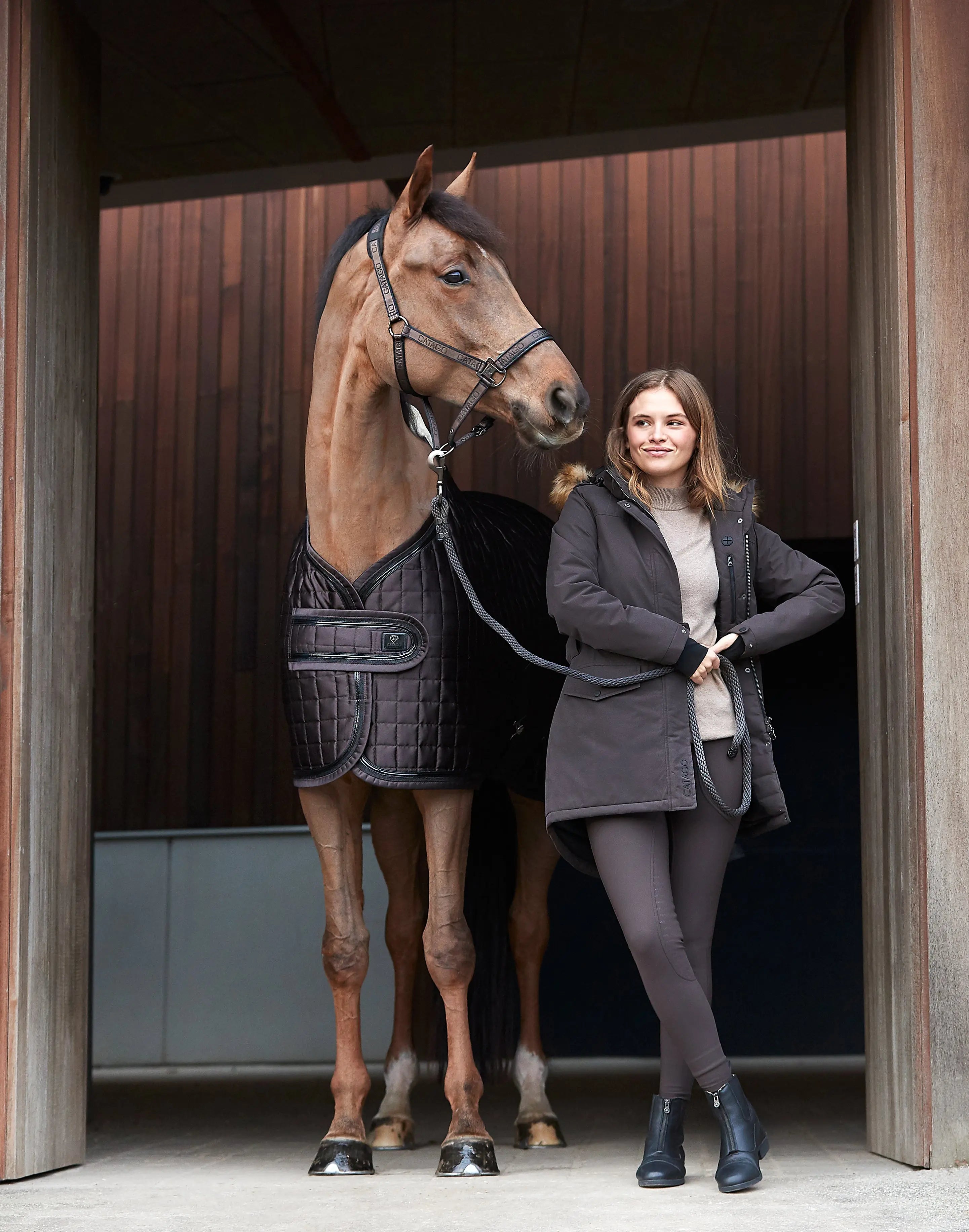 The Catago Halter is a refined soft halter with a webbed design, featuring a woven logo pattern for a touch of elegance.