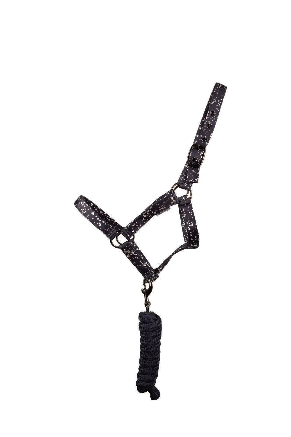 Create an alluring look with this stylish head collar from Hy Equestrian. Made from a smooth yet durable navy material with gunmetal grey mottled design, this stand-out head collar is the perfect addition to your horse's wardrobe. Finished with coordinating hardware, adjustable head piece and complete with matching lead rope.
