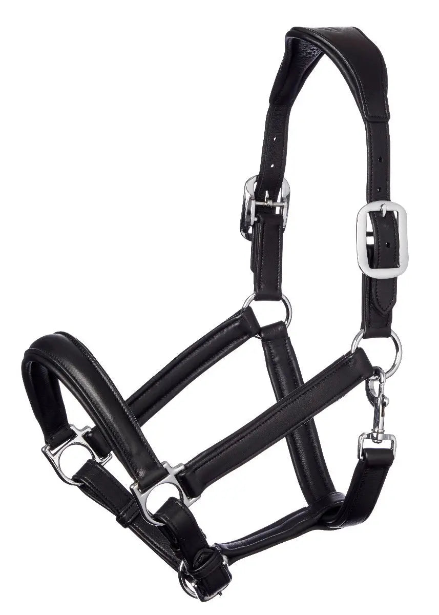 The LeMieux Anatomical Leather Headcollar is a beautifully crafted, soft leather headcollar featuring an anatomically shaped and padded headpiece and noseband to provide complete comfort for your horse. The throatlash is also padded for further comfort and can be unclipped for convenience. This headcollar is finished with solid metal fittings with adds luxury and style to this headcollar, with double buckles on the headpiece giving full adjustability of fit.