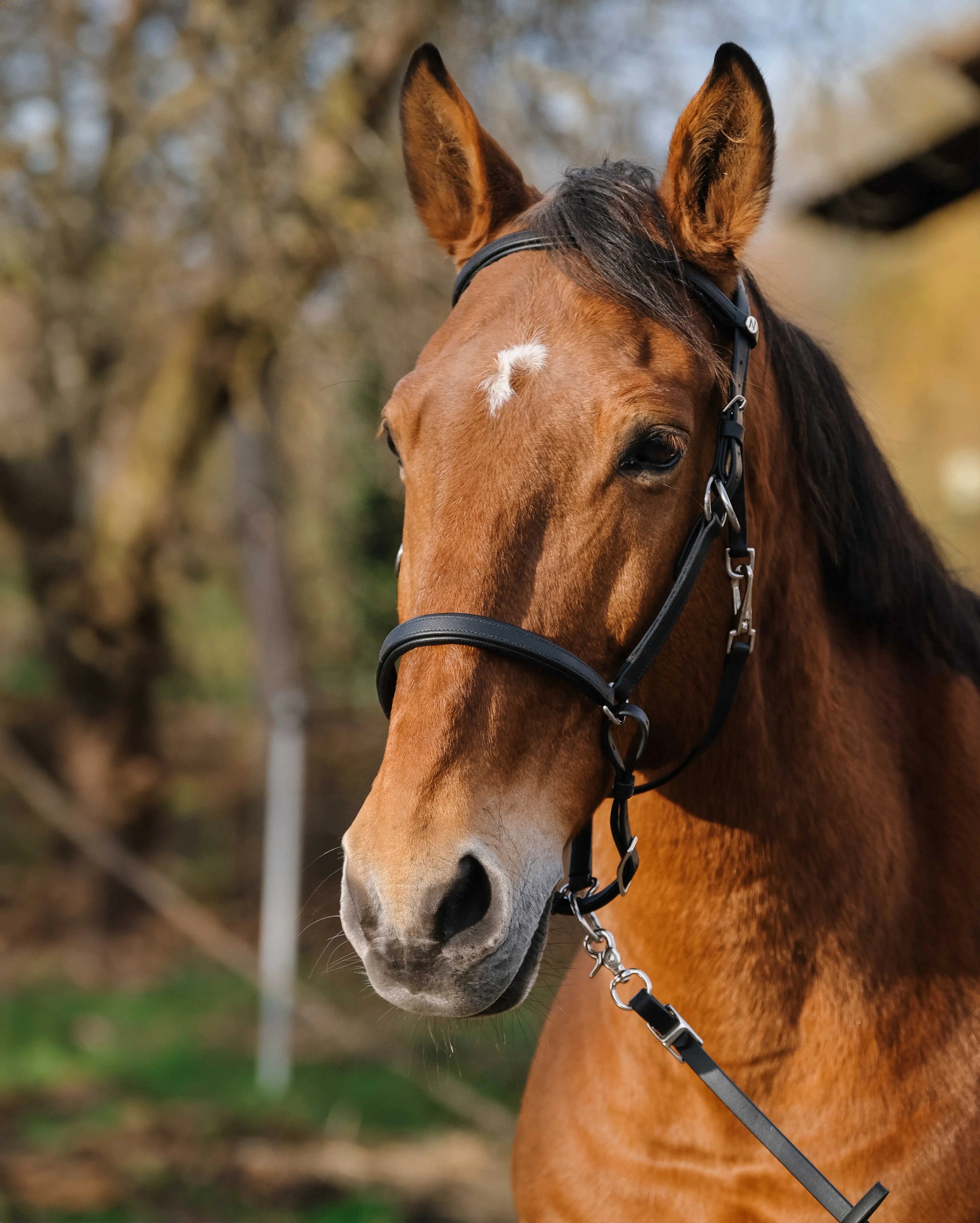 - Anatomical comfort: Padded noseband, browband, and headpiece.