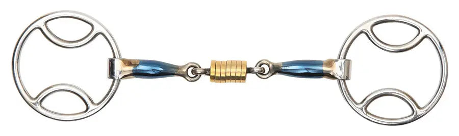 - Bevel cheeks give a mild leverage action through poll pressure- The roller links encourage play and mouthing which can increase acceptance of the bit and the contact- These links also discourage fixing or leaning on the bit- Blue sweet iron oxidises easily in the mouth, offering a warm and sweet taste which is favoured by many horses