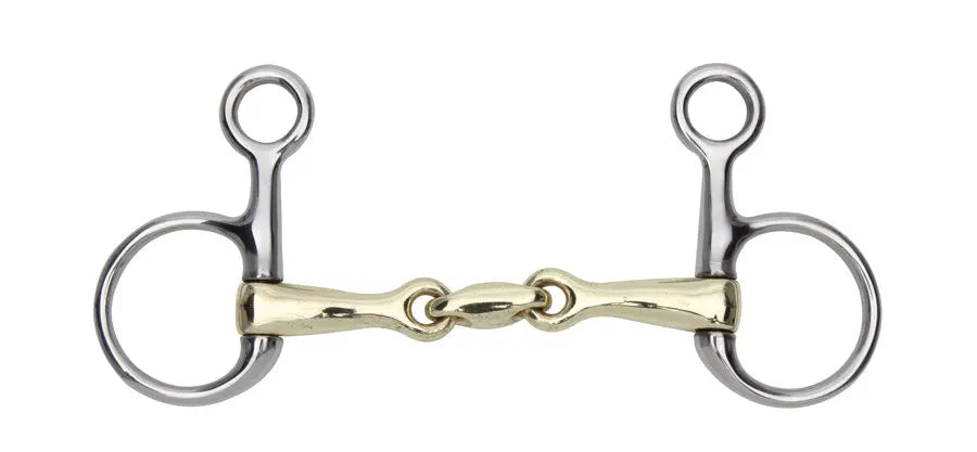 The Shires Brass Alloy Hanging Cheek with Lozenge Bit has a lozenge to prevent the nutcracker effect of a single joint.
