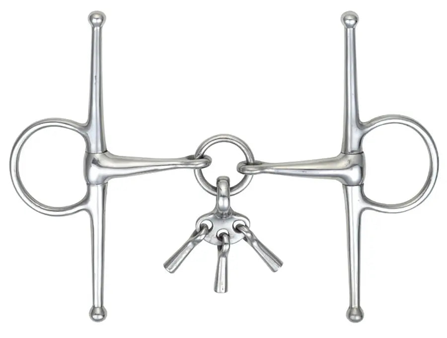 An ideal bit for encouraging young horses to accept the bit, the Shires Full Cheek Snaffle With Keys is designed with a joint and moveable "keys" which allows the horse to play and mouth. Mouthing naturally encourages salivation which aids acceptance of the bit. The full cheeks are designed to help with turning and steering, as well as preventing the bit from being pulled through the horse's mouth. This is a great choice of bit for young horses.