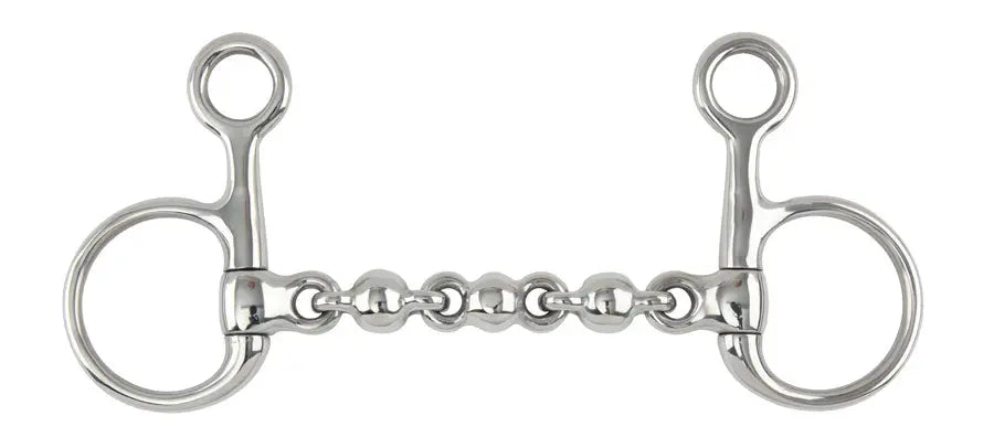 The Shires Hanging Cheek Waterford Bit features a Waterford mouthpiece; this mouthpiece is made up of multiple links, making it completely flexible. This makes it difficult for the horse to take a hold on the mouthpiece to discourage fixing or leaning. The hanging cheeks fit with the smaller ring attaching to the bridle cheekpiece and can help to keep the bit more stable inside the horse's mouth, helping to encourage the horse to go forwards into an outline.