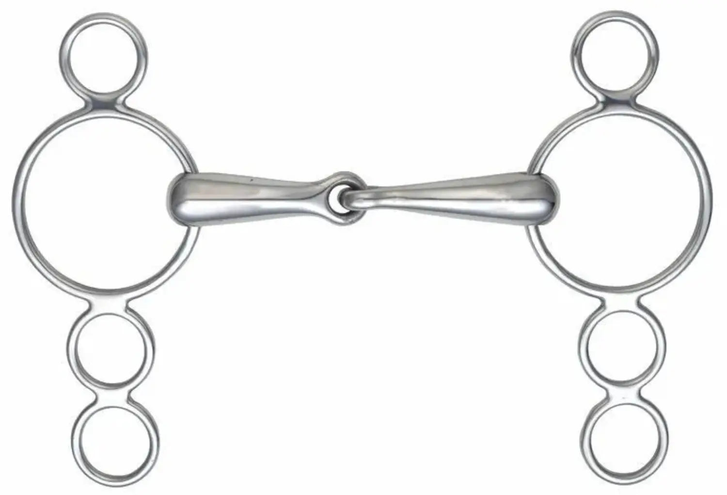 The Shires Three Ring Dutch Gag is a versatile stainless steel bit designed for increased control.