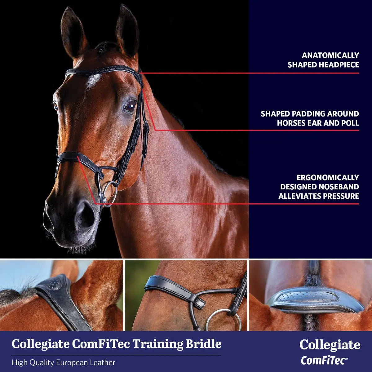 The Collegiate ComFiTec Training Bridle is part of the unique and innovative Collegiate ComFiTec Bridlewear Collection, with every aspect of the bridle designed with the horse's anatomy in mind to offer supreme comfort and fit. Made from the finest quality European leather with high grade stainless steel fittings, the ComFiTec bridles are approved to FEI, BE and BD regulations.