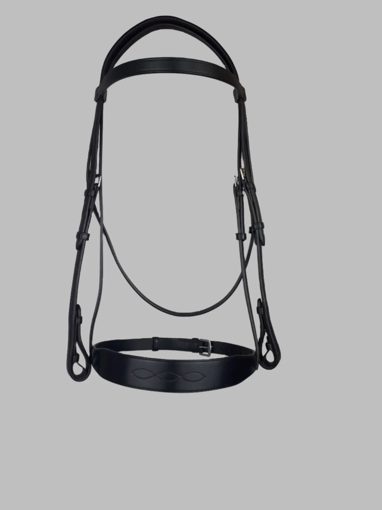 Made to a traditional design with a broad noseband with matching stitching detail and plain browband, this bridle is fit to grace any show ring.