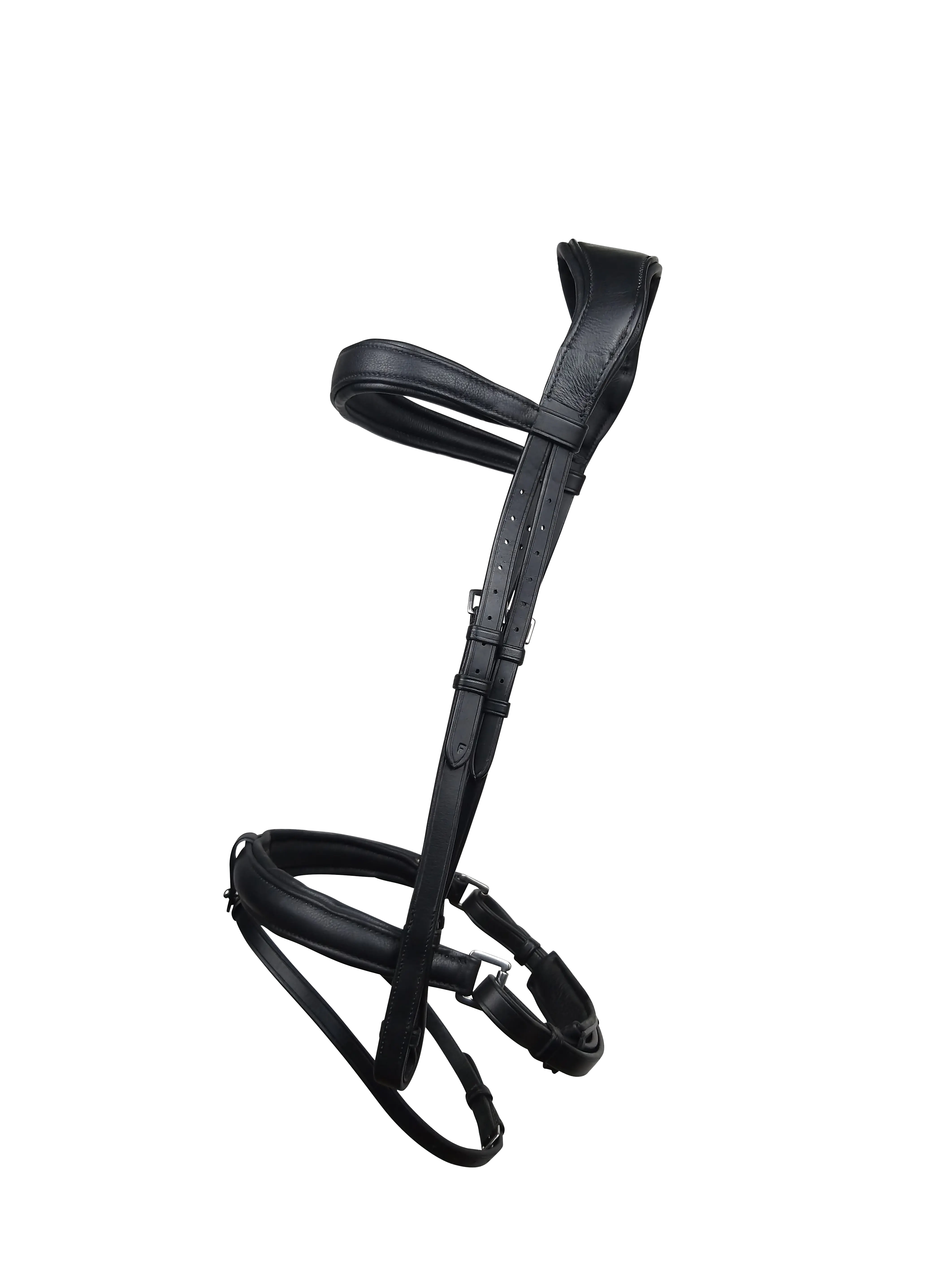 The headpiece of this bridles features a suspended throatlash to remove jaw restriction allowing it to sit in a more natural position.