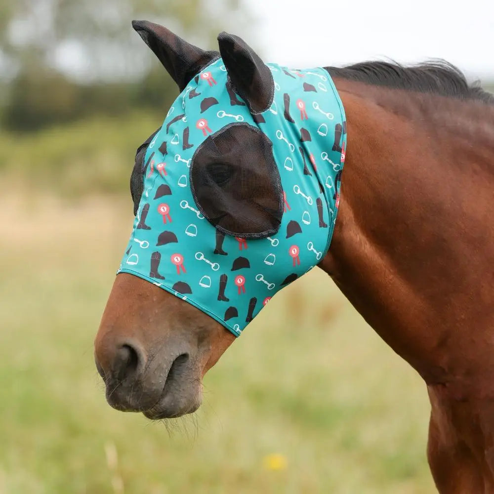 Hy Equestrian Lycra Boot & Bit Print Fly Mask
