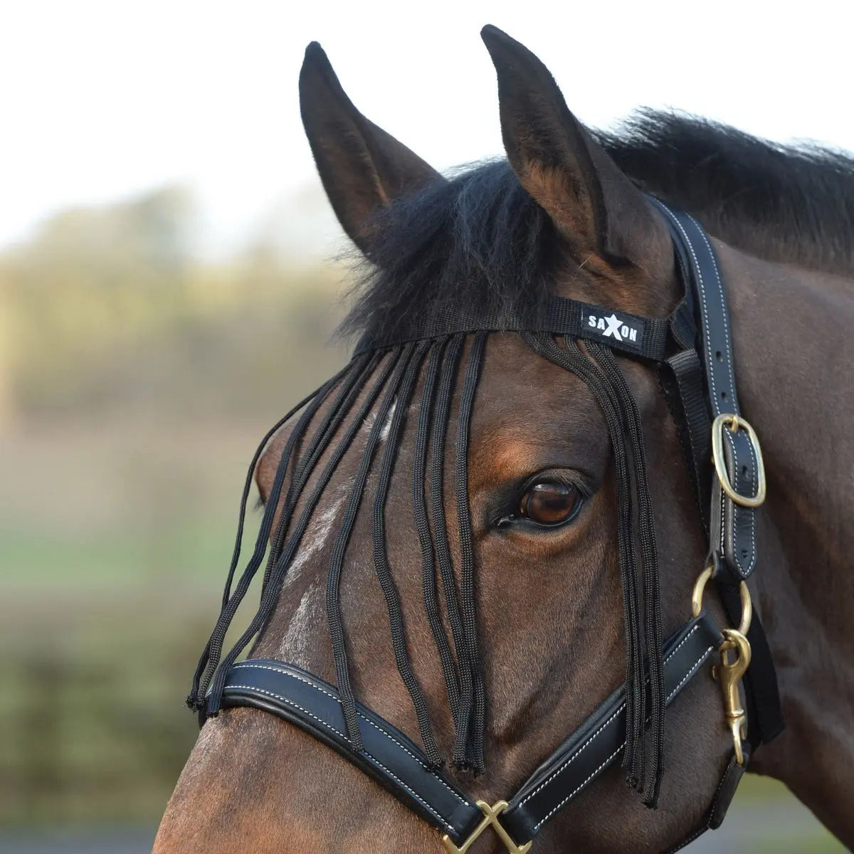 The Saxon Fly Fringe offers protection from flies and insects. Adjustable and easy to attach without the need for a headcollar with tassels over the eyes to protect against flies.