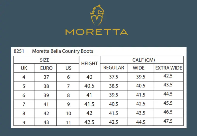 The Shires Moretta Bella II Waterproof Country Boot is a redesign of the best-selling Shires Moretta Bella Boot with improved design and fit. These traditionally styled waterproof country boots offer style, practicality and comfort, as well as flexibility of fit with three calf width options. Designed from flexible, quick-drying and water repellent leather, these country boots feature strong, durable YKK side zips with waterproof gussets. These zips offer an easy solution for riders who struggle with a high instep or have difficulty putting boots on. The new-design elasticated keeper straps are simple to secure. The Shires Moretta Bella II Waterproof Country Boot has been developed for performance through the seasons, with an abundance of innovative, weatherproof technologies. Waterproof membrane socks and moisture wicking liners will keep your feet dry and comfortable. Superb performance and foot support is promised with a contour flex insole. Moretta AllTerrain Riding Soles with steel shanks offer traction, stability and durability across varied terrain. The Shires Moretta Bella II Waterproof Country Boot also features rot proof stitching for longevity.