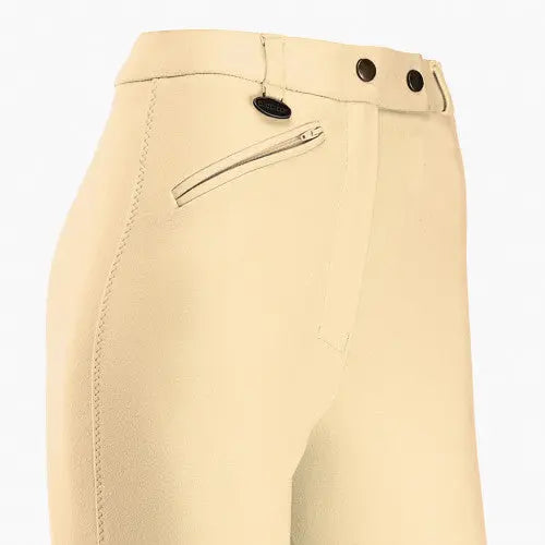 Classically styled jodhpurs and great for competitions and leisure riding. Superior quality with 5% Lycra for excellent stretch and shape retention. Features a diagonal zip pocket, Equetech comfort waistband, zip fly, double stud fastening, self fabric knee patches and cuffs at hem.