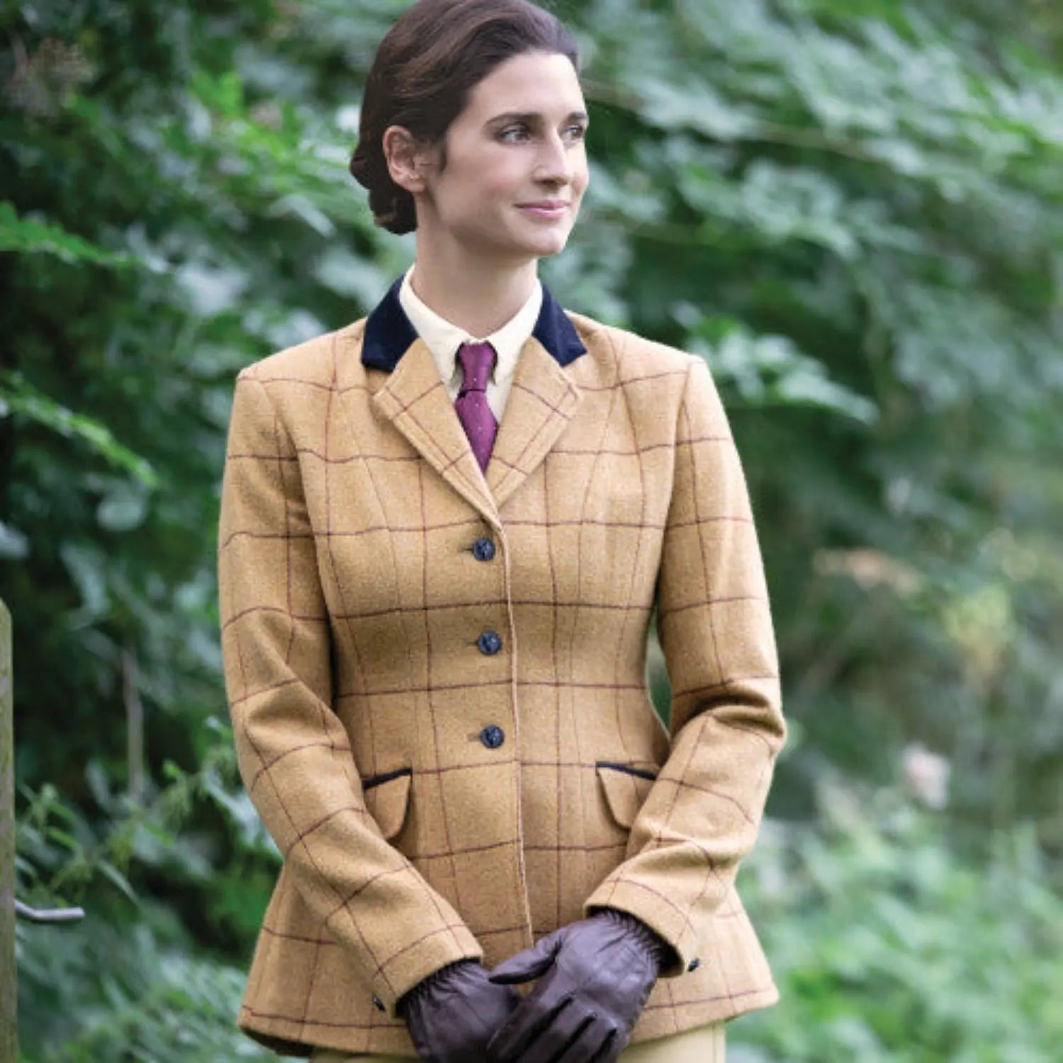 Introducing the Exclusive Equetech Brown Tweed Hacking Jacket with Maroon and Gold Overchecks.