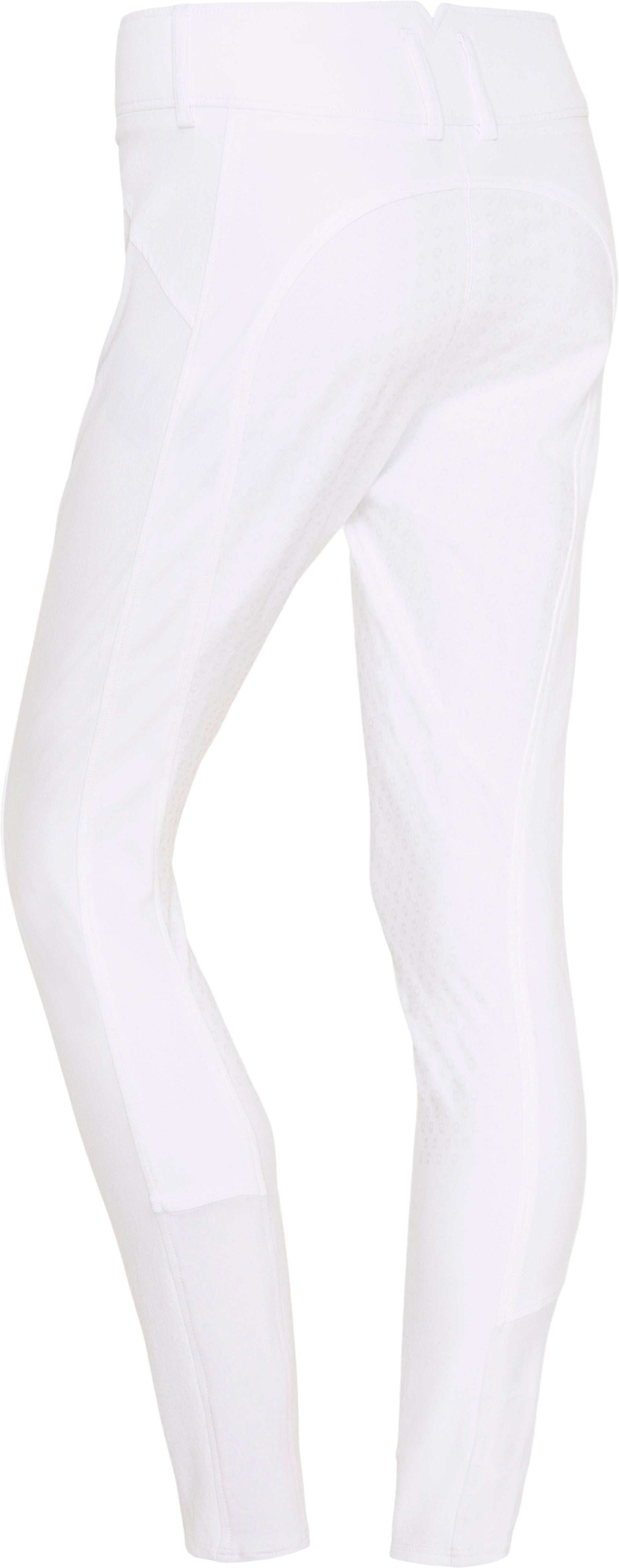 Elegant high waisted breeches with full seat silicone logo grip. Raised back waistband with a decorative slit detail. Wide belt loops to emphasise the waist and create a feminine hourglass shape. Elastane blend ensures a beautifully stretchy material.