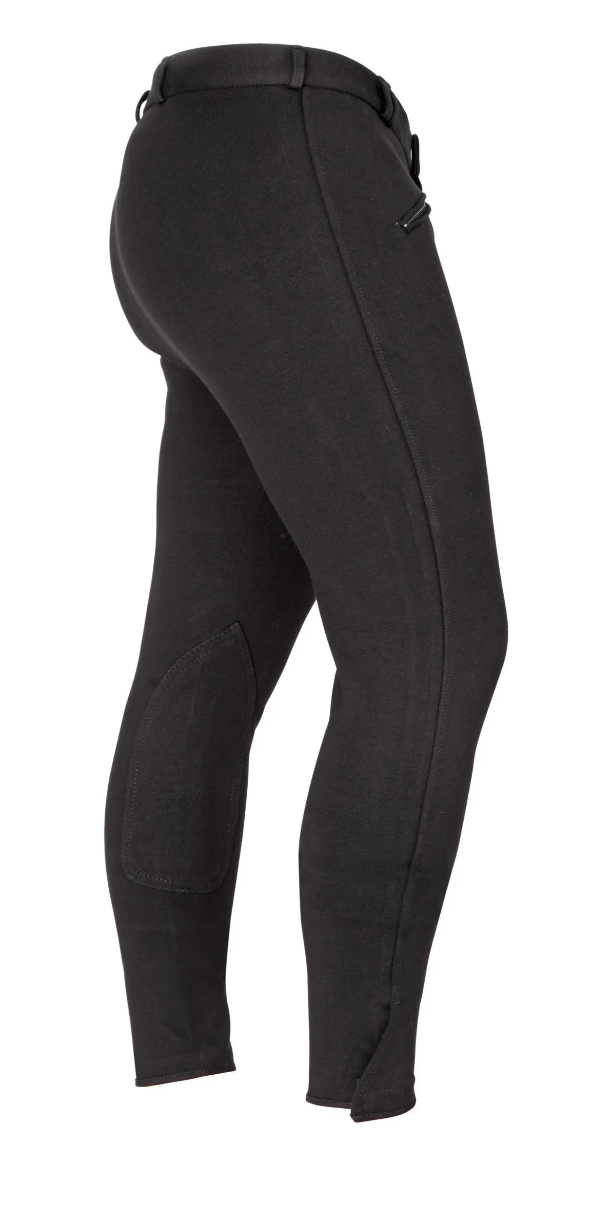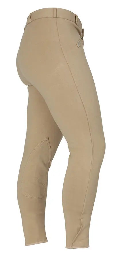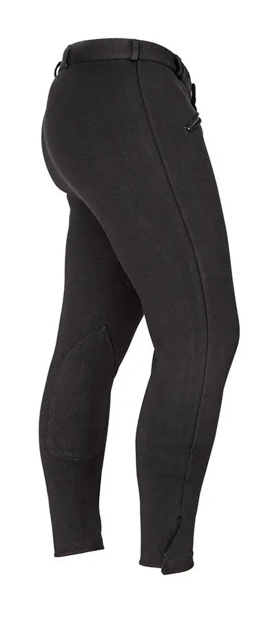 The Saddlehugger breech from Shires is made from their innovative Creora 4-way stretch knitted fabric, which ensures that the breeches fit perfectly and are very comfortable to wear. These breeches are amply cut for a great fit and have a flat front and belt loops. With self-fabric knee strappings for extra protection where you need it most and touch close leg fastenings. Made from 95% cotton and 5% elastine they are available in a choice of three colours.