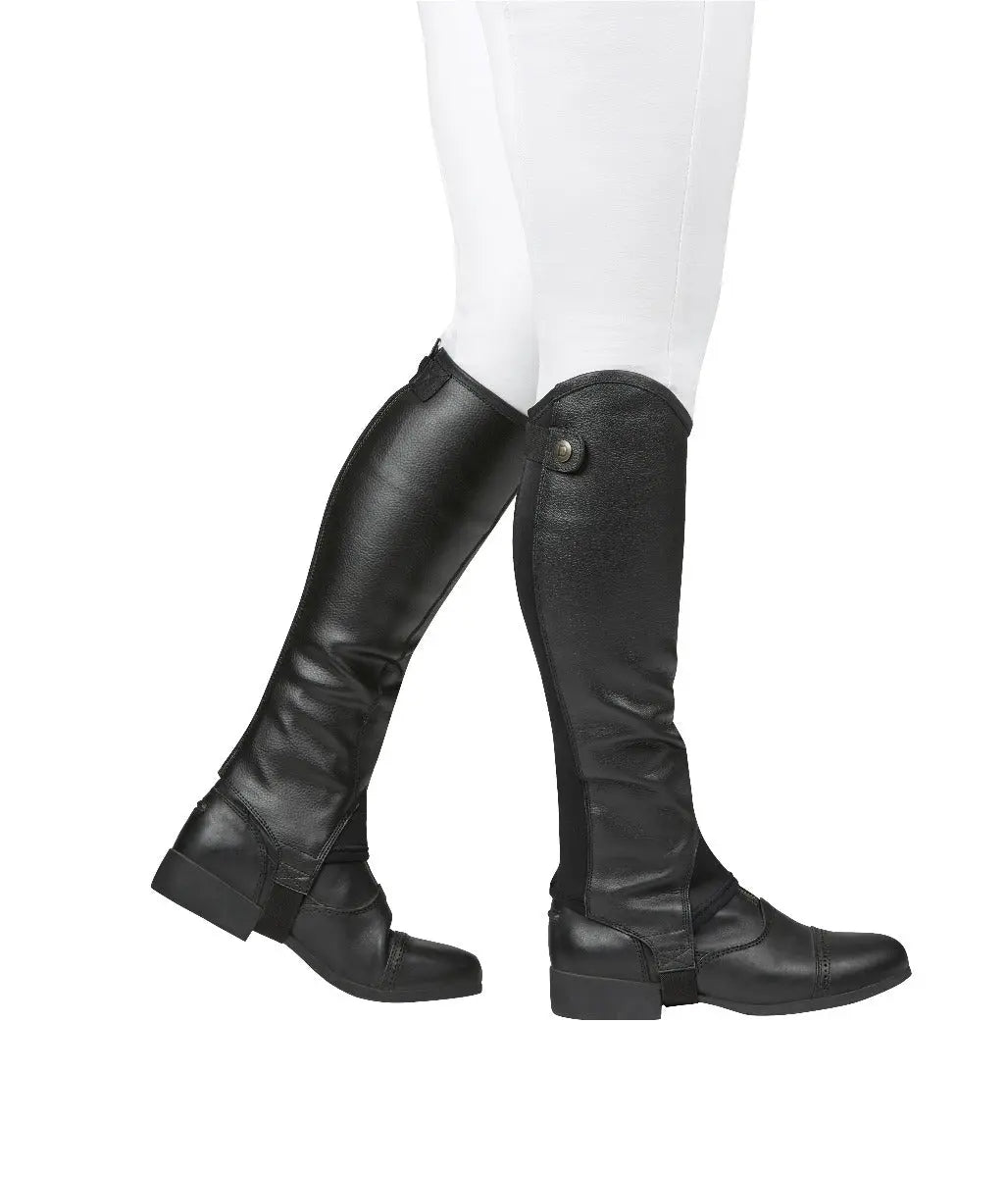 The Dublin Fusion Half Chaps are an ideal choice for everyday and for competition, featuring both grained leather and synthetic leather with a natural lining for a close contact against the horse.