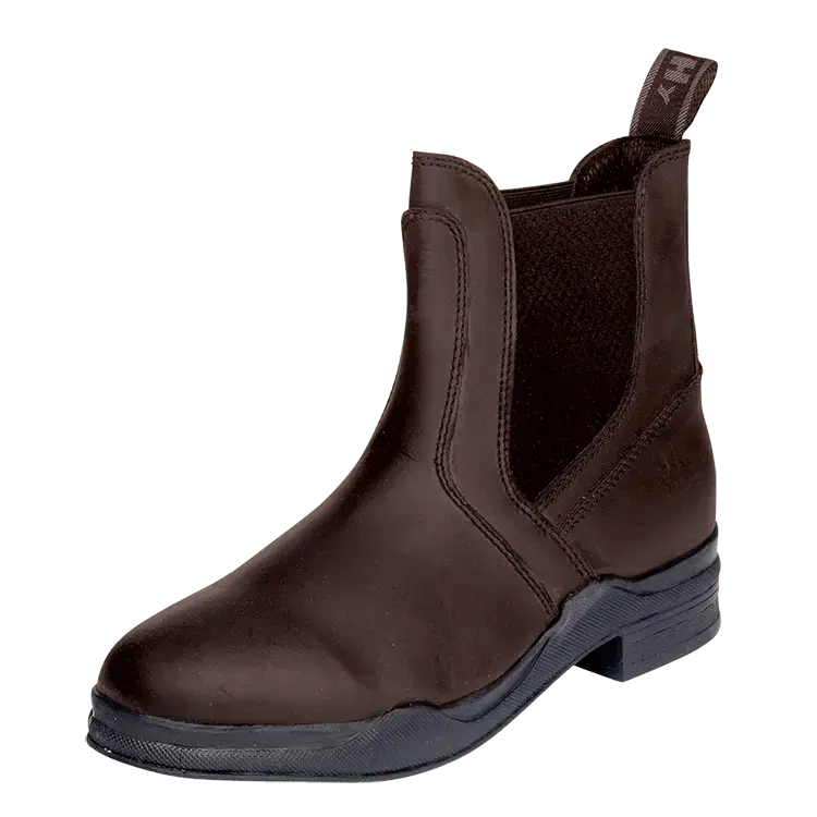 HyLand Wax Leather Jodhpur Boots are a hard wearing have the extreme comfort of a cushioned insole that is perfect for either riding or wearing on the yard. The ankle is given maximum ankle support with a steel shank and a pull-on design, and elasticated side gussets for practical usage. The waxed leather offers water-resistance that’s combined with the lightweight TRP sole, which has excellent grips and is very hard-wearing.