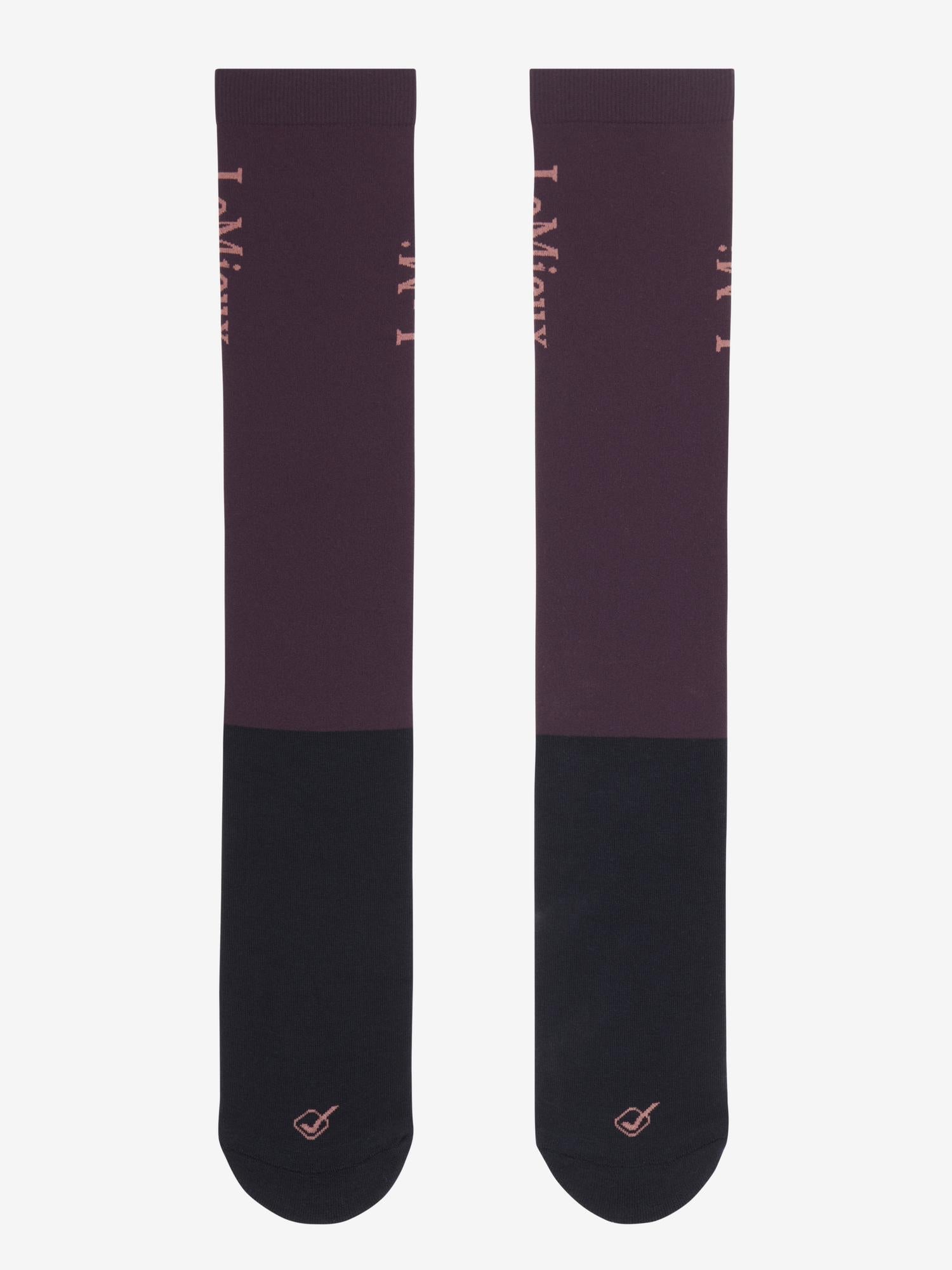 Lightweight, ultra-close contact riding socks from LeMieux. Seamless low-profile fabric offers compression that enhances the fit of long boots - these are socks so comfortable, you'll forget you're wearing them. Maximum comfort, cutting-edge design and proven performance are the core of everything LeMieux. These Competition Socks are no exception. The soft closely woven foot gives support and stability while the topside seam ensures comfortable toes. The micro-weight stretch upper ensures minimal impact on boot fit, eliminating distractions so you can concentrate your ultimate performance.