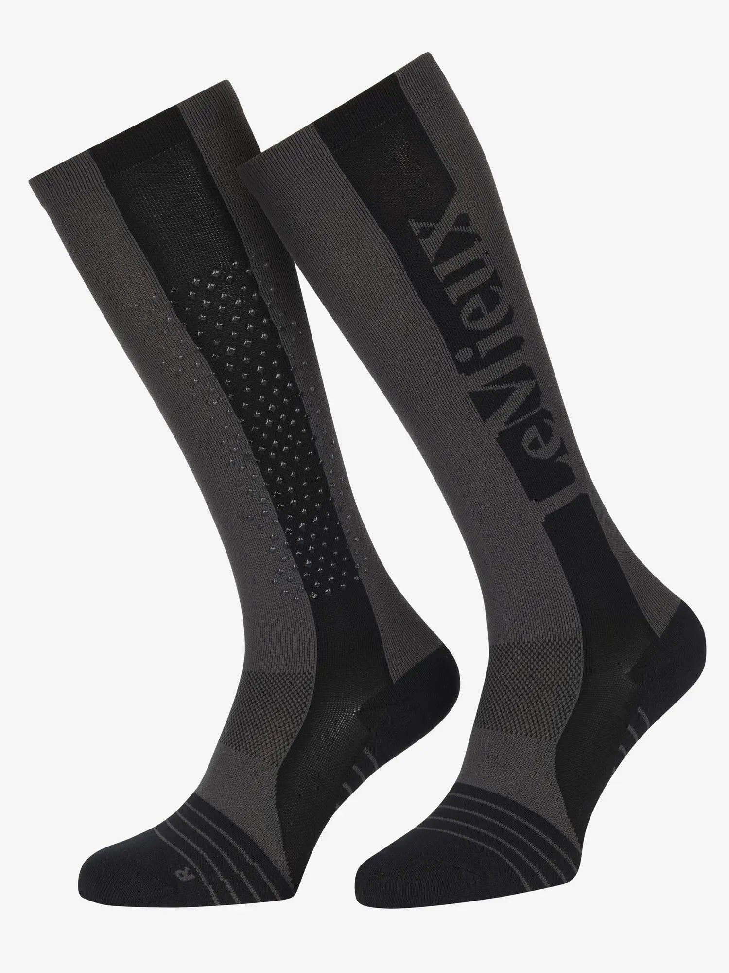 The padded foot and arch offers all the support you need, while a diamond print silicone grip on the inside of the calf keeps these performance-enhancing socks in place, whether worn over or under breeches and riding boots.