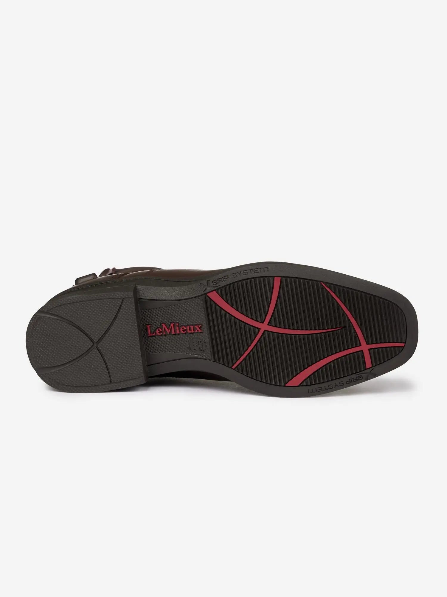 The advanced X-Grip rubber sole ensures dependable non-slip traction across all surfaces and weather conditions. Its unique linear tread pattern is engineered to align with your stirrup’s footplate, helping to keep your foot securely in place while riding.