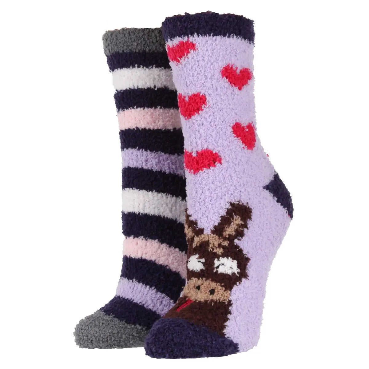 Wildfeet Adults Donkey Fluffy Socks 2 Pack-One Size (UK 4-8)
