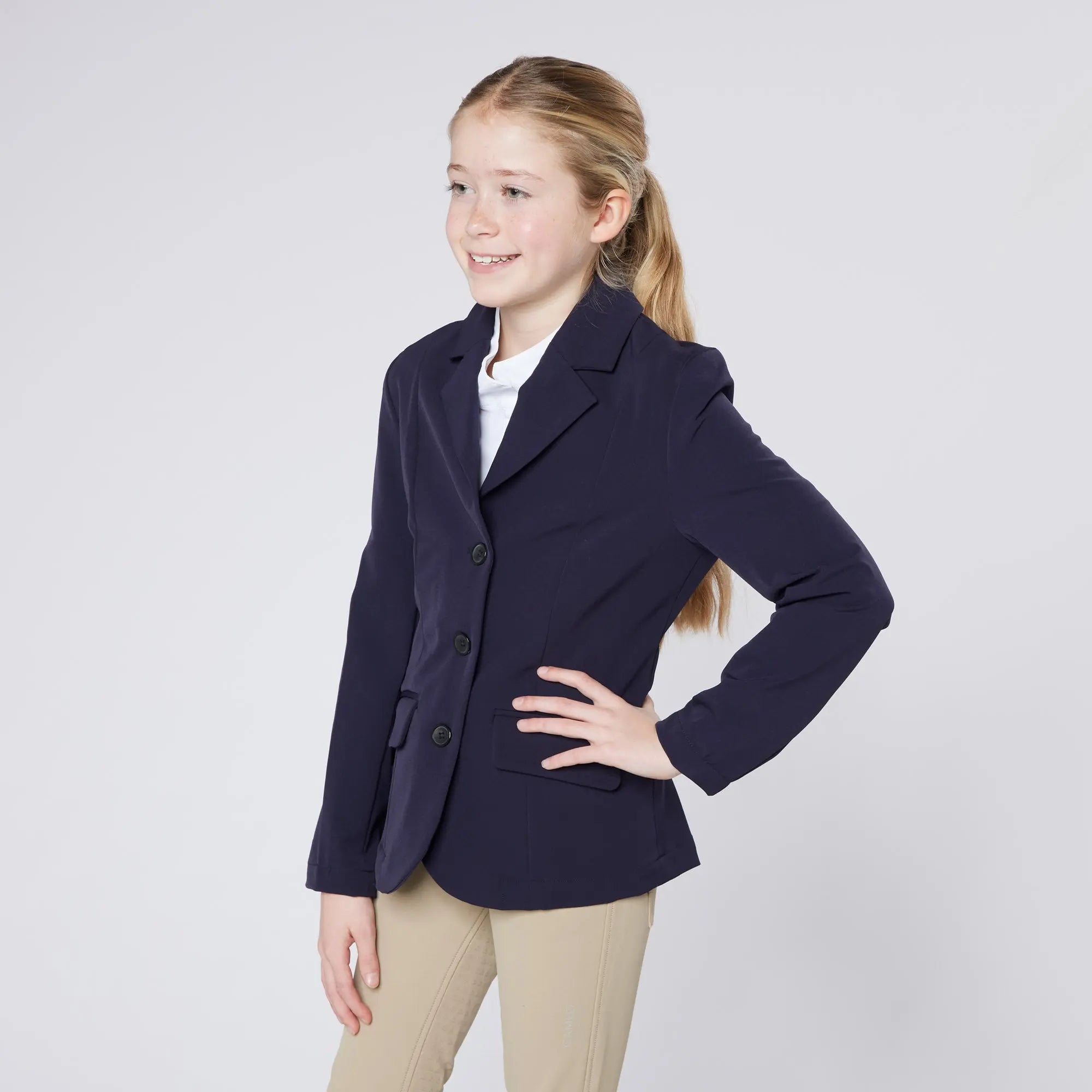 The Cameo Equine Junior Ada Competition Show Jacket is expertly crafted with technical stretch fabric for a sleek, tailored fit. With premium fabric providing flexibility and comfort, this structured and fitted jacket offers a polished and stylish appearance. This junior competition jacket features a hidden zip beneath the front three pockets to prevent pulling and double front pockets add to the clean and stylish design, all at an affordable price.