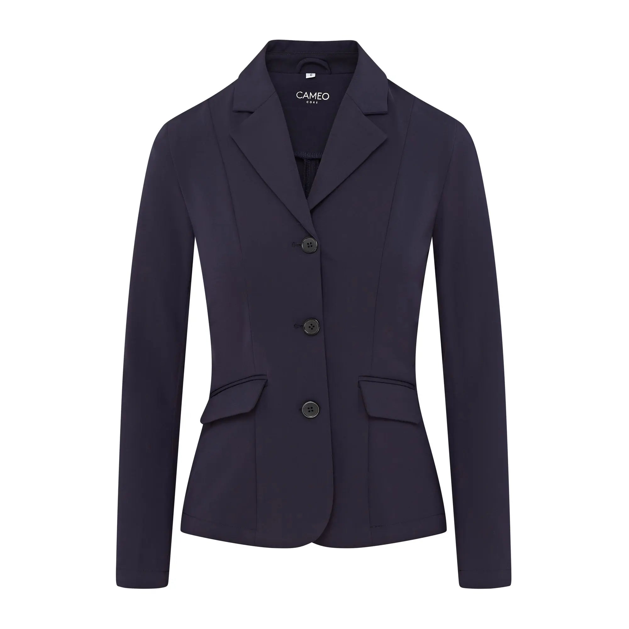 The Cameo Equine Ladies Ada Competition Show Jacket is expertly crafted with technical stretch fabric for a sleek, tailored fit. With premium fabric providing flexibility and comfort, this structured and fitted jacket offers a polished and stylish appearance. This ladies competition jacket features a hidden zip beneath the front three pockets to prevent pulling and double front pockets add to the clean and stylish design, all at an affordable price.