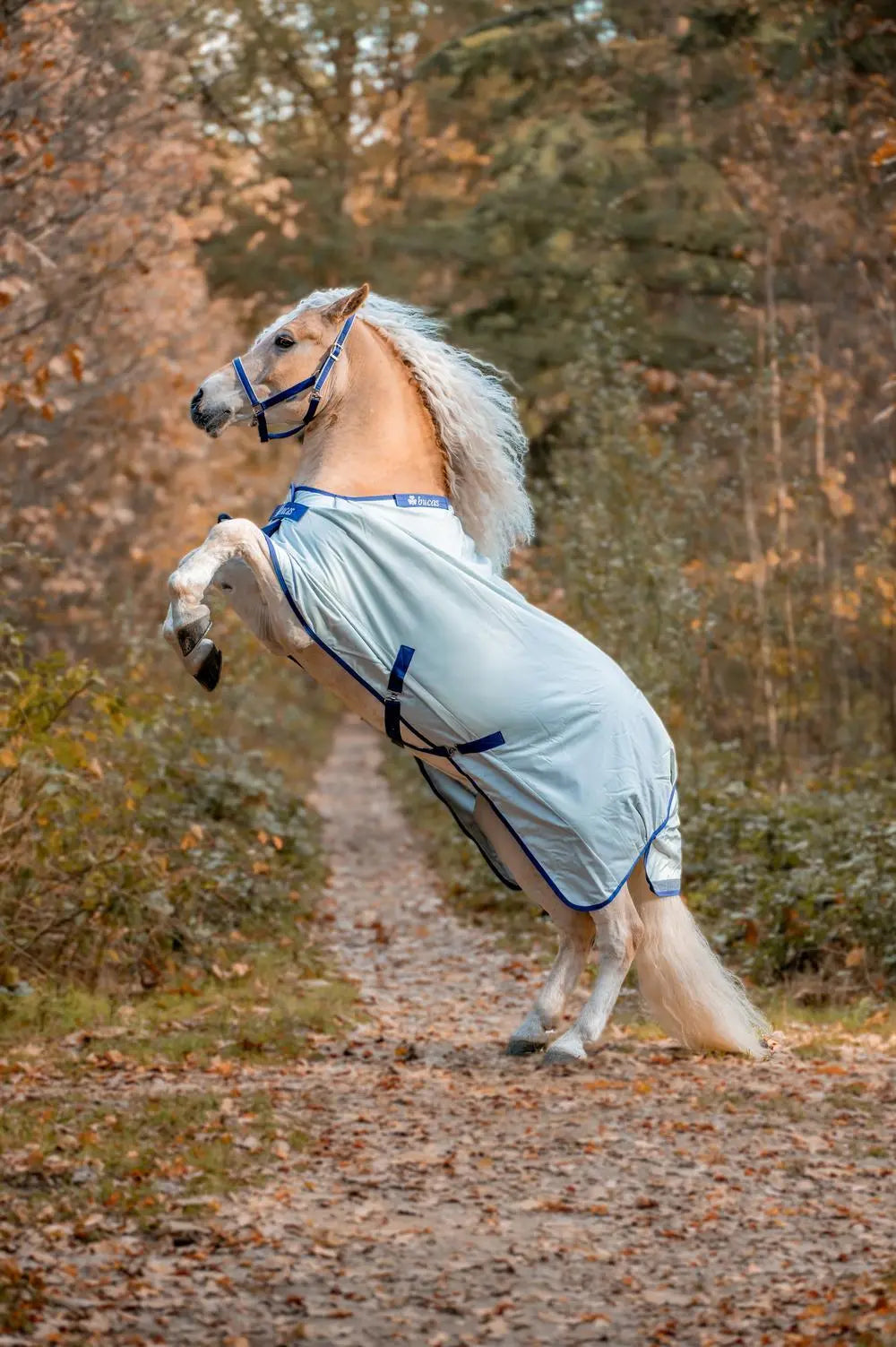 This rug includes all of Bucas’ trusted design features, including the Click’n Go front closure with magnetic Snap-lock, shoulder darts, cross surcingles, deluxe leg straps, tail flap and deluxe tail cord. Reflective strips at the front and tail flap improve visibility, and attachment points are included for use with Bucas liners, quilts and coolers. Neck attachments are also compatible.