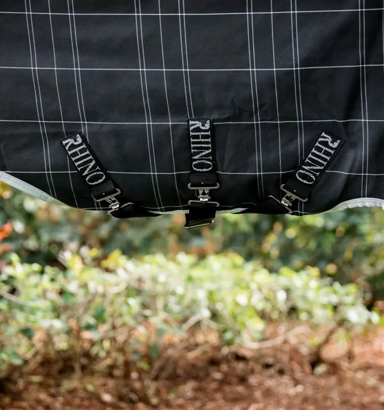 Horseware Ireland Rhino Wug Turnout Rug 0G Blk / Grey / White Chk & Gray