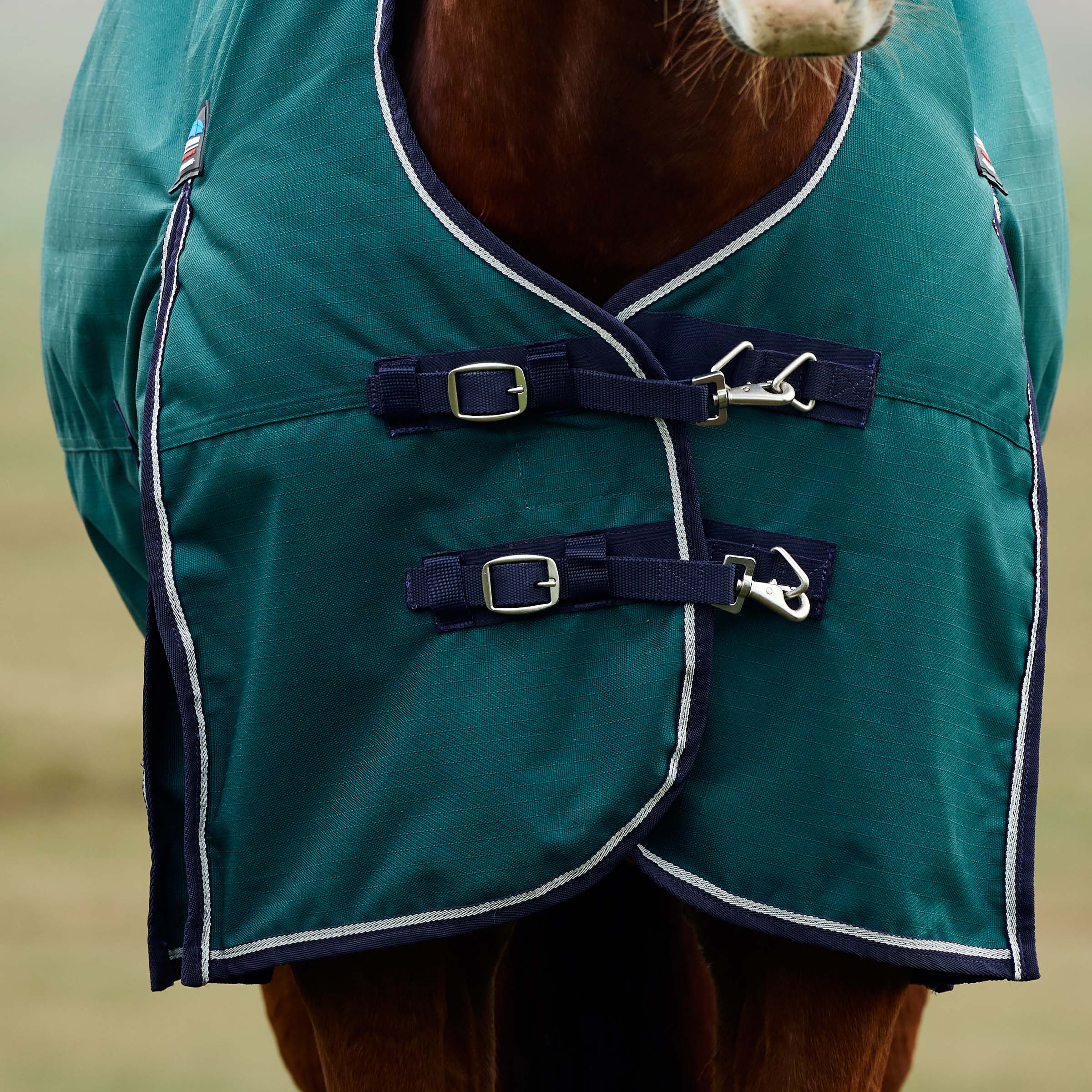 Comfort, durability and protection in any weather with the WeatherBeeta ComFiTec Plus Dynamic Turnout High Neck 100G. Engineered with horse owners in mind, this turnout rug combines advanced materials with thoughtful design to deliver unparalleled protection and comfort for your horse. Featuring a robust 1200 denier ripstop outer shell with PFC-free Guard-Tec coating, it provides superior waterproofing and breathability, ensuring your horse remains dry and cosy, even in harsh conditions. The memory foam wither relief pads reduce pressure and rubbing, while the smooth 210T lining enhances coat shine.Thanks to the twin adjustable quick clip closure with touch tape, a secure and customised fit ensure's your horse is snug without the hassle. Packed with practical features like reflective bindings for easy spotting at night and a traditional side gusset allowing natural movement, this rug is the ultimate choice for horse owners who demand quality, comfort, and reliability.