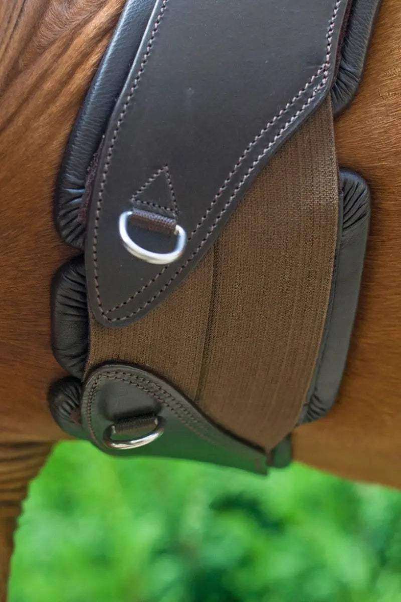 A central stretch section at the sternum creates a balanced girth that allows the horse to breathe without any unwanted pinching.