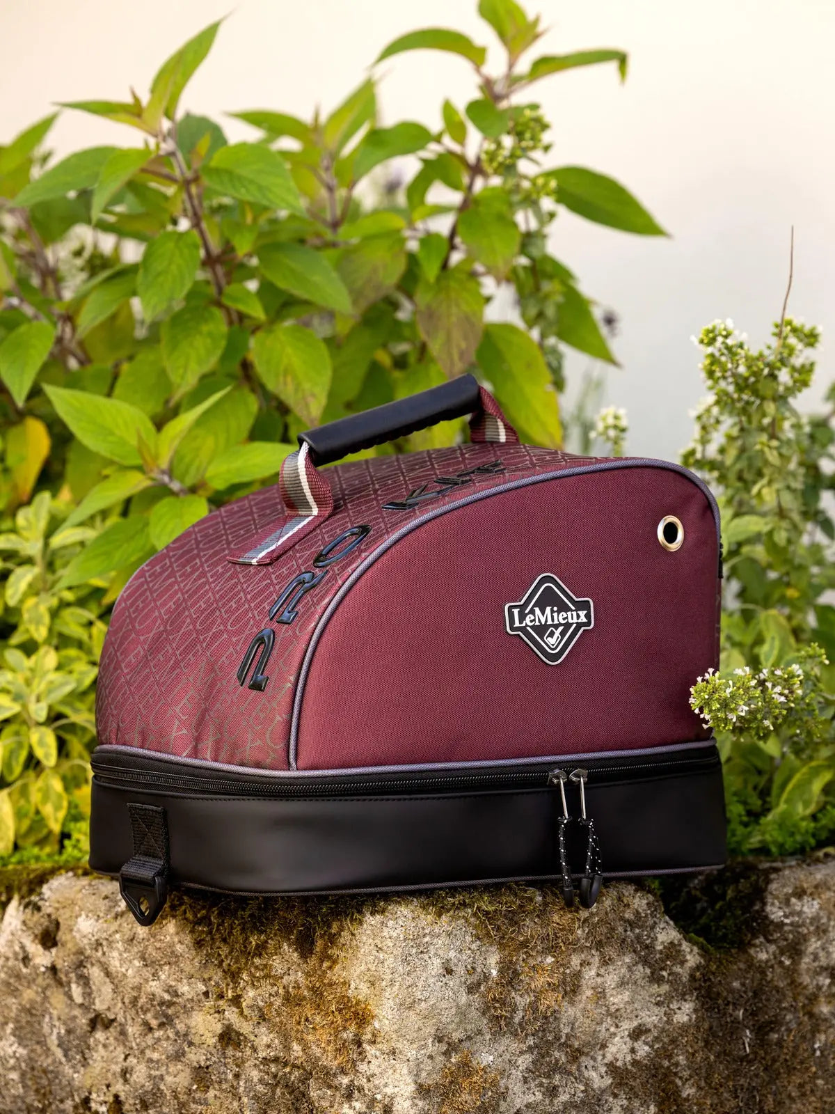 The LeMieux Elite Burgundy Pro Hat Box is a sturdy and resilient exterior material that protects your hat from dirt and moisture.