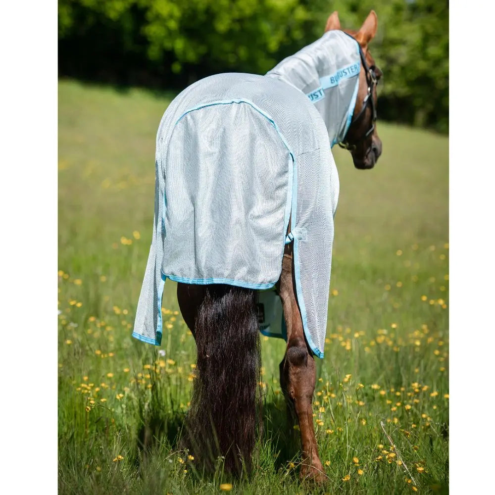 The Horseware Ireland AmEco Bug Buster Fly Rug offers fantastic protection for your horse from flies and biting insects. It's designed to provide extended coverage of the tail, upper legs, and belly, in a knitted polyester fabric that is soft, absorbent, and durable. The fabric is designed to reflect sunlight to keep your horse cooler during hot weather and protect the coat from bleaching.