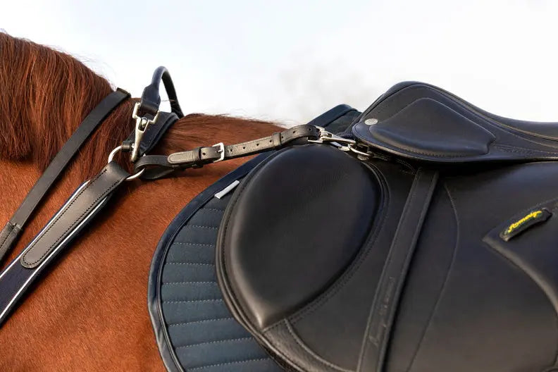 A removable safety neck strap adds extra reassurance for riders and functions as a grab strap on young, exuberant horses. An excellent choice for show jumpers or eventers going cross country.