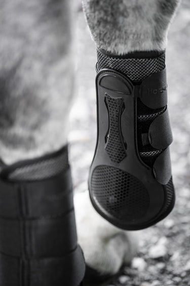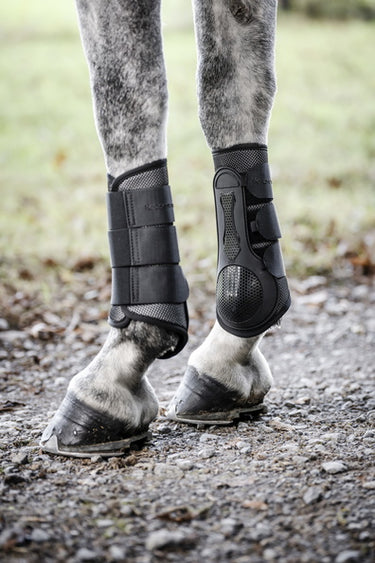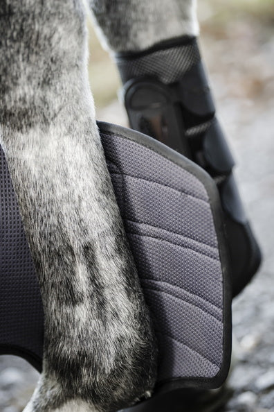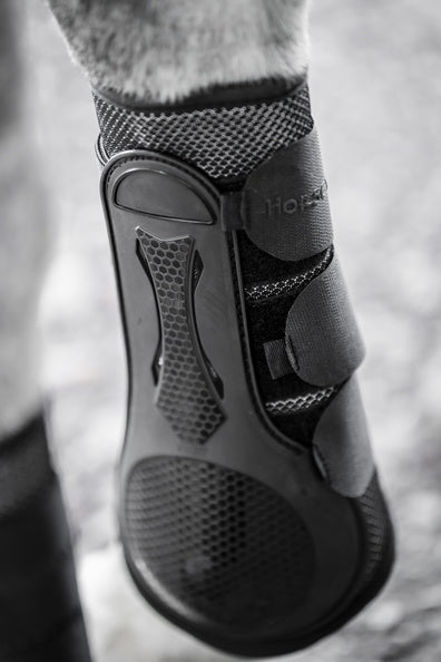 Give your horse's legs breathable, lightweight protection with Horseware® Pro Bamboo Brushing Boots. Perforated neoprene-bamboo lining promotes air flow and bamboo's natural antibacterial, odor-reducing, and moisture-wicking properties help keep legs cool and dry. The PU strike pad shields from interference and impacts. Flexible shell and elasticated straps with velcro closure provide a comfortable, secure fit.