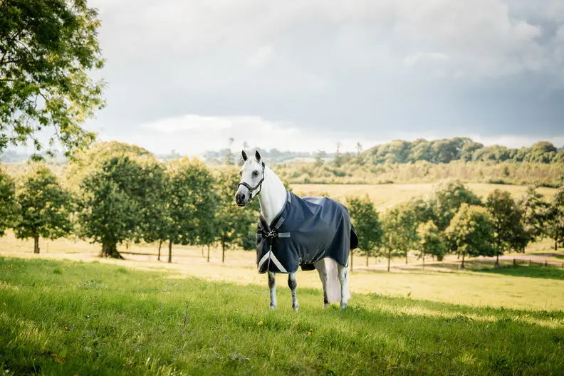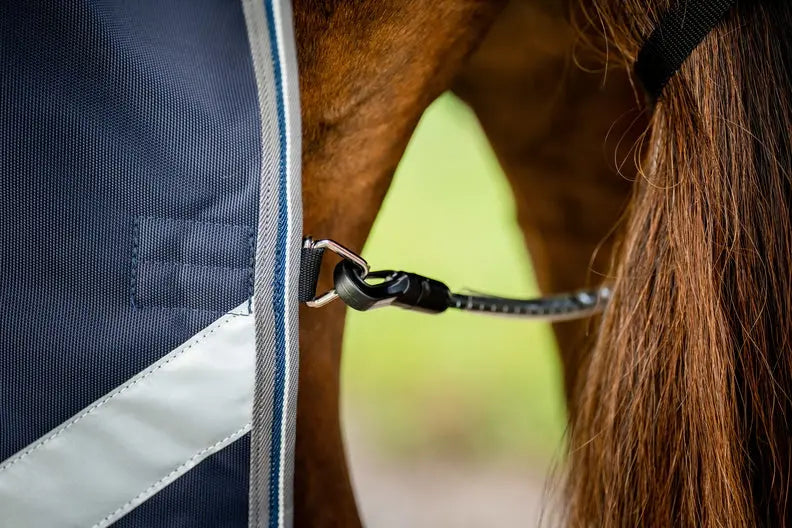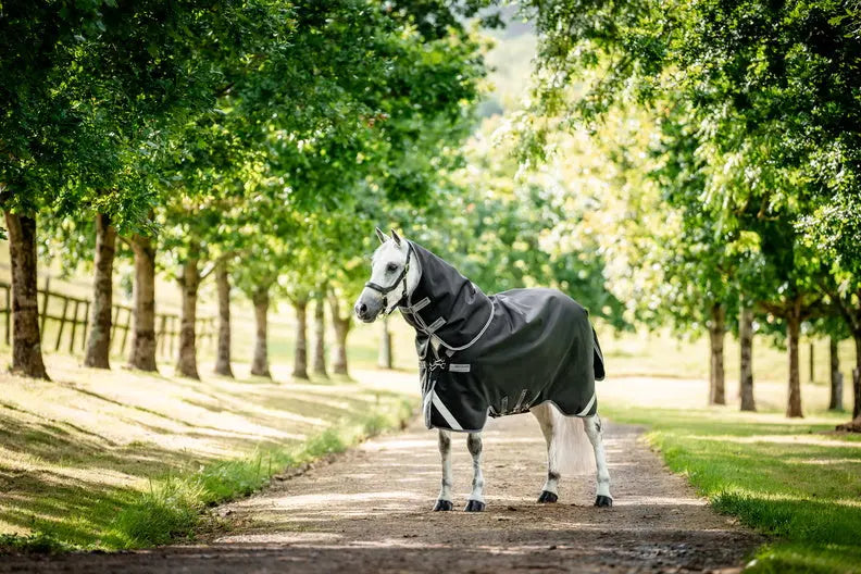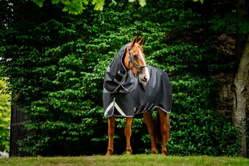 The Surefit neck design with V Front closure and dual leg arches allows natural movement through the shoulders, helping your horse stay comfortable while grazing and moving in the field. A detachable hood is included for added protection, while reflective strips improve visibility in low-light conditions.