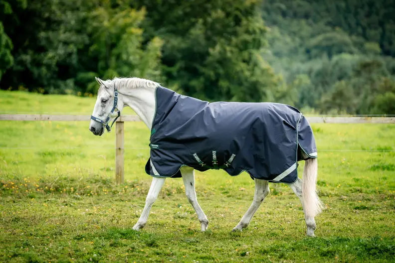 Horseware Ireland Rambo 1680D Wug Turnout Rug 200G Navy / Hunter Green & Silver