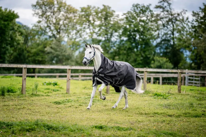Horseware Ireland Rambo 1680D Wug Turnout Rug 200G Black / Thunderstorm Grey & Silver