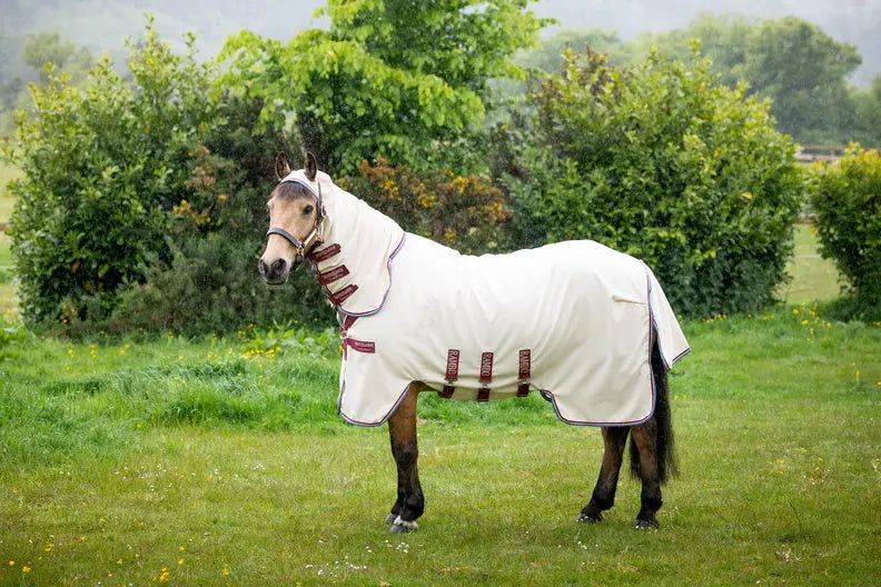 Protect your pony from summer irritations with the Rambo® Pony Hoody – a premium fly rug offering exceptional defence against flies, UV rays, and skin irritations. Crafted from ultra-durable 1000D polyester with a soft, close-weave finish, this lightweight and breathable rug is designed to block even the smallest biting insects. Ideal for sensitive ponies, it provides 90% UV protection and all-over coverage with an integrated neck cover, extended belly panel with secure Velcro closures, and a generous tail flap.