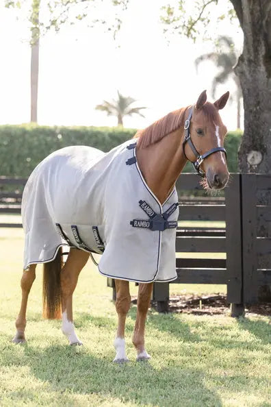 Made of a highly breathable and durable self-repairing mesh fabric with 65% UV protection, this sheet is a great choice for sensitive or boisterous horses. Extended chest and leg coverage plus extra wide belly band and oversized tail flap offer maximum fly protection.