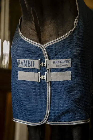 Horseware Ireland Rambo Techni Waffle Cooler Navy / Thunderstorm Grey & Silver