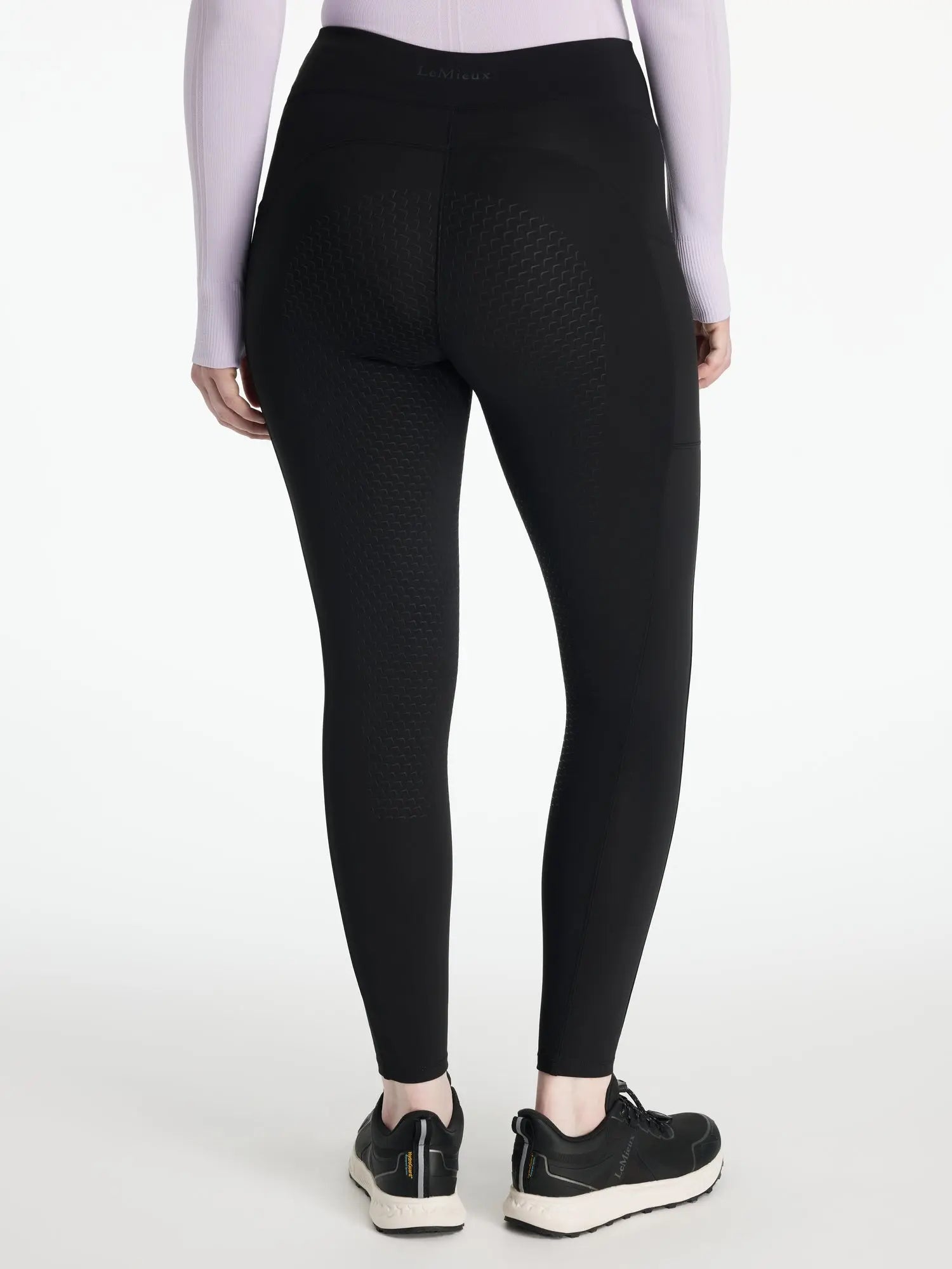 Keep warm and comfortable in cold weather with these thermal-lined riding leggings. Brushed back fabric with thermal properties will capture heat next to the skin, meaning you'll stay cosy on winter rides.The patterned silicone full seat print gives extra security in the saddle. Reflective logo details provide a flash of reflective detail in low light. A high-waisted fit and engineered, shaped panels contour your body, providing support in all the right places for a flattering fit.