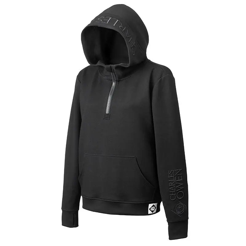 Practical and fashionable, it features a front kangaroo pocket to store essentials, 1/4 zip for comfort, and a varsity-inspired waistband and cuffs. Finished with the Charles Owen embossed logo on the hood and arm, this hoodie combines premium style with everyday functionality. Pair it with other pieces from the collection for a coordinated look.