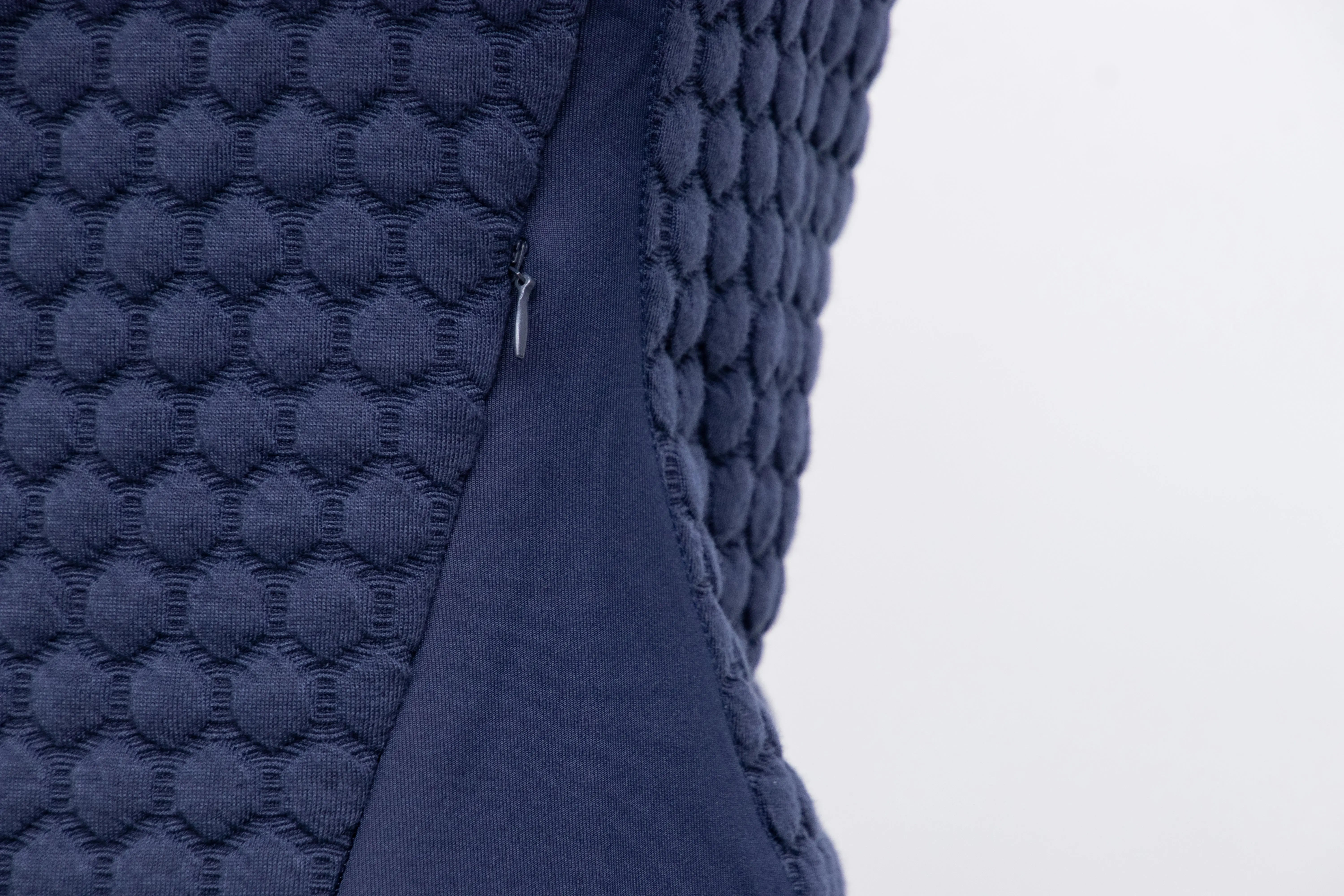 Our luxury Foulden Sweater is designed using a technical raised hexagonal shaped material to allow you to keep warm whilst optimising breathability, offering a flattering relaxed fit. The contour-flex arms result in a comfortable fit and a stylish appearance whilst allowing for a full range of movement. The rounded neck creates a smart appearance and is ideal for layering with our base layers for a professional image and large front pocket that is perfectly hidden with concealed zips for a smooth and flattering look. Finished with opulent branding on the shoulder and silicone hexagonal detailing on the sleeve. Can be worn as part of your equestrian wardrobe for training days or as an essential everyday piece.