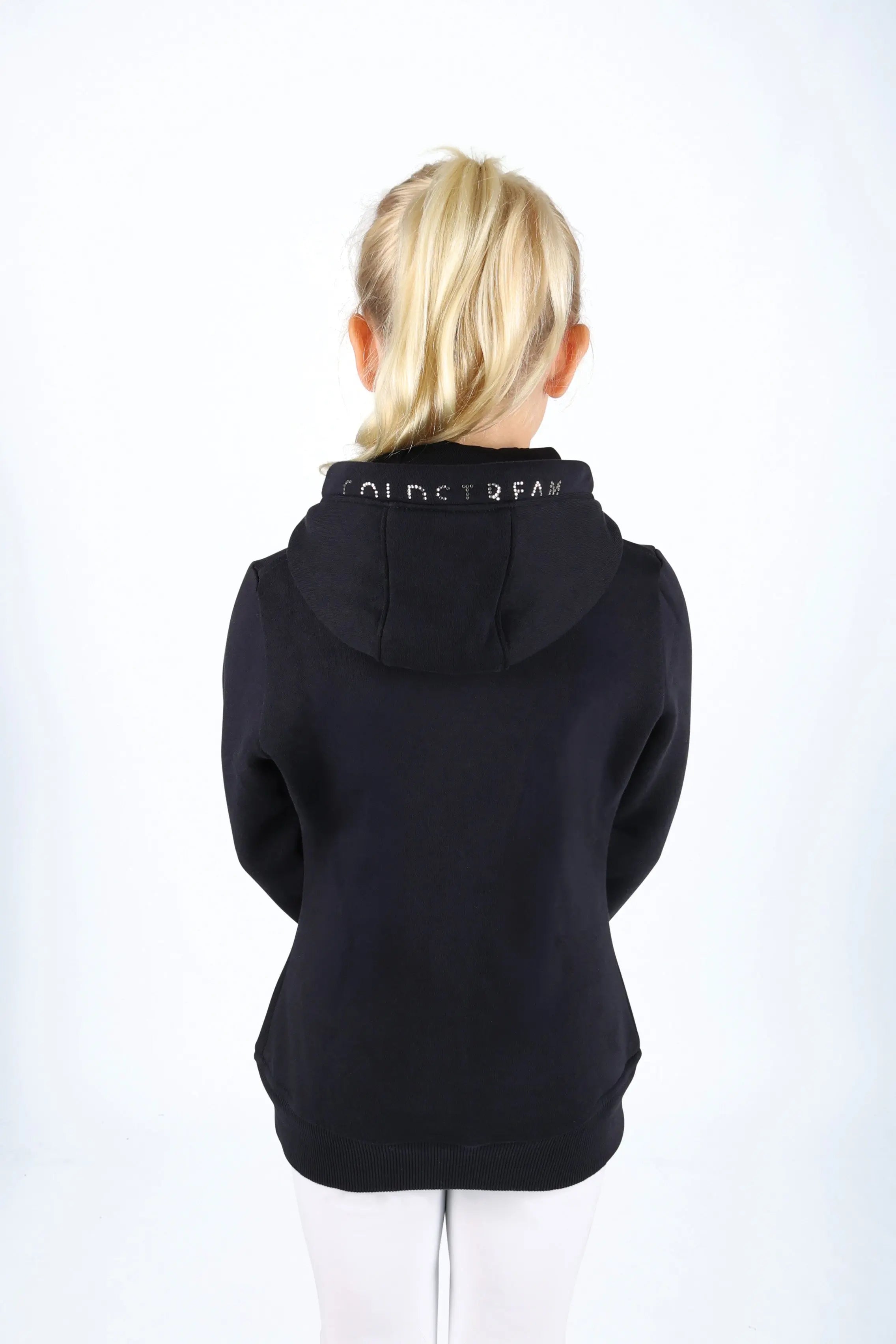 The deluxe Swanlaws Diamante Hoodie is the ultimate statement hoodie for every elite rider’s wardrobe. Perfect for training days, competition days or for casual wear, the classic hoodie features a generously soft lining for maximum comfort. The iconic Coldstream logo is encompassed on the front by glittering silver and navy diamantes, along with the Coldstream name in shimmering diamantes on the hood. Finished with a luxury ribbed waistband and cuffs, with a high collar for ultimate warmth and a luxurious feel.