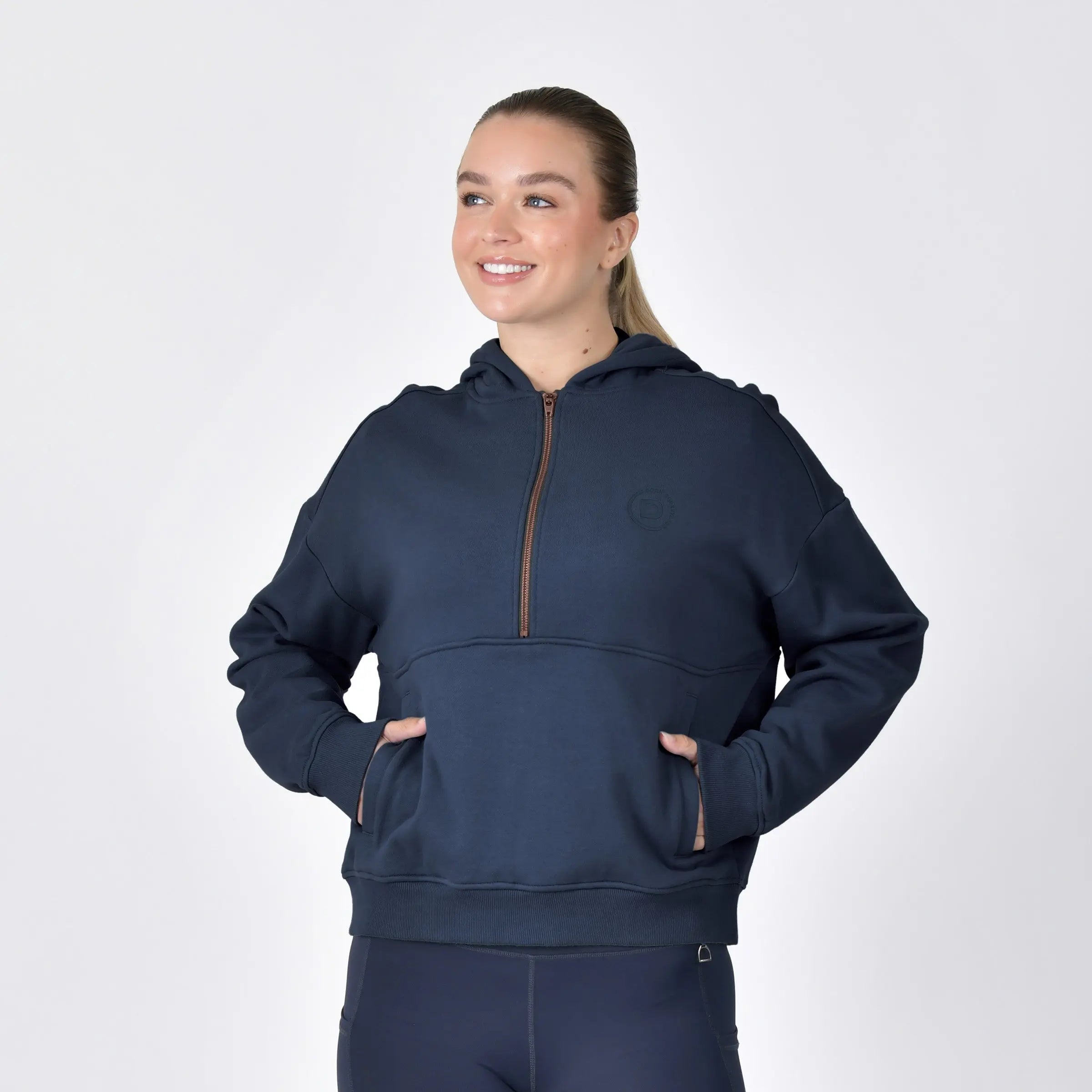 Elevate your equestrian wardrobe with the Dublin 1/4 Zip Hooded Fleece Pullover, designed to keep you comfortable and stylish during crisp morning rides and unpredictable weather. This versatile mid-layer features a soft cotton fleece interior for a cosy warmth, while its breathable exterior ensures you stay comfortable through every trot and gallop. The 1/4 zip design makes it easy to remove without the hassle of taking off your helmet, and secure side pockets provide the perfect space for your essentials. Finished with a contrast left chest print, this fleece pullover blends performance and modern style effortlessly, making it a must-have for horse riders who demand both practicality and elegance from their gear.