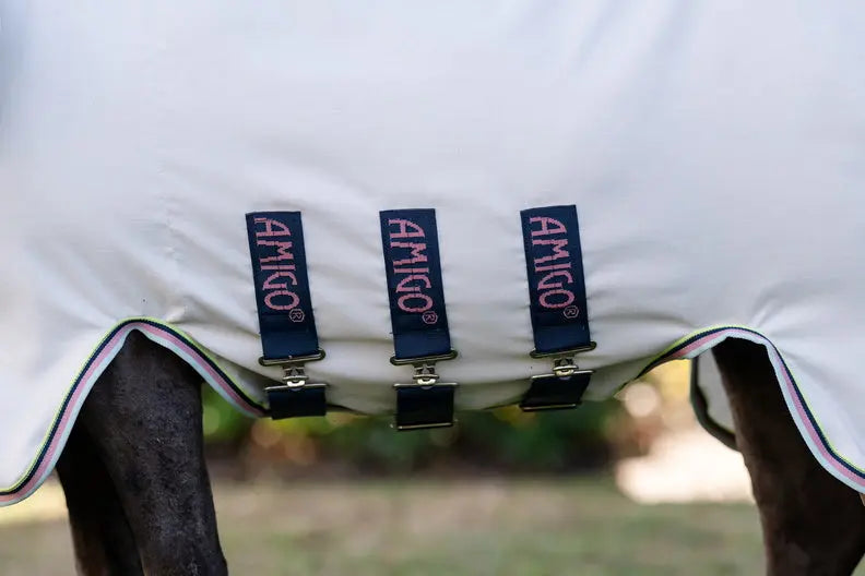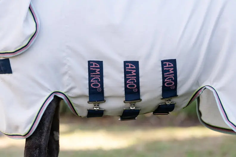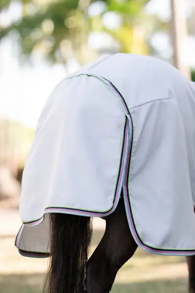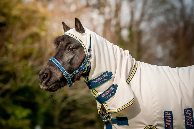 Keep your miniature horse protected and comfortable this summer with the Amigo® Petite Ripstop Hoody pony fly rug. Specifically designed for ponies and miniature horses, this lightweight fly rug provides effective protection against biting insects, summer skin irritations, and harmful UV rays, offering 90% UV protection. Made from durable and breathable 600D polyester ripstop fabric, the close-weave material stops flies and midges while allowing airflow to keep your pony cool. This pony fly rug features full-body coverage with an integrated neck cover that includes ear protection, extended belly coverage secured with three straight surcingles, and a generous tail flap with a tail strap for added security. Inside, the rug is lined with a silky smooth fabric to help prevent mane and shoulder rubs while enhancing comfort. Whether your pony is in the paddock or enjoying turnout, the Amigo® Petite Ripstop Hoody pony fly rug ensures all-over sun and insect protection, keeping your mini safe, happy, and irritation-free all season long.