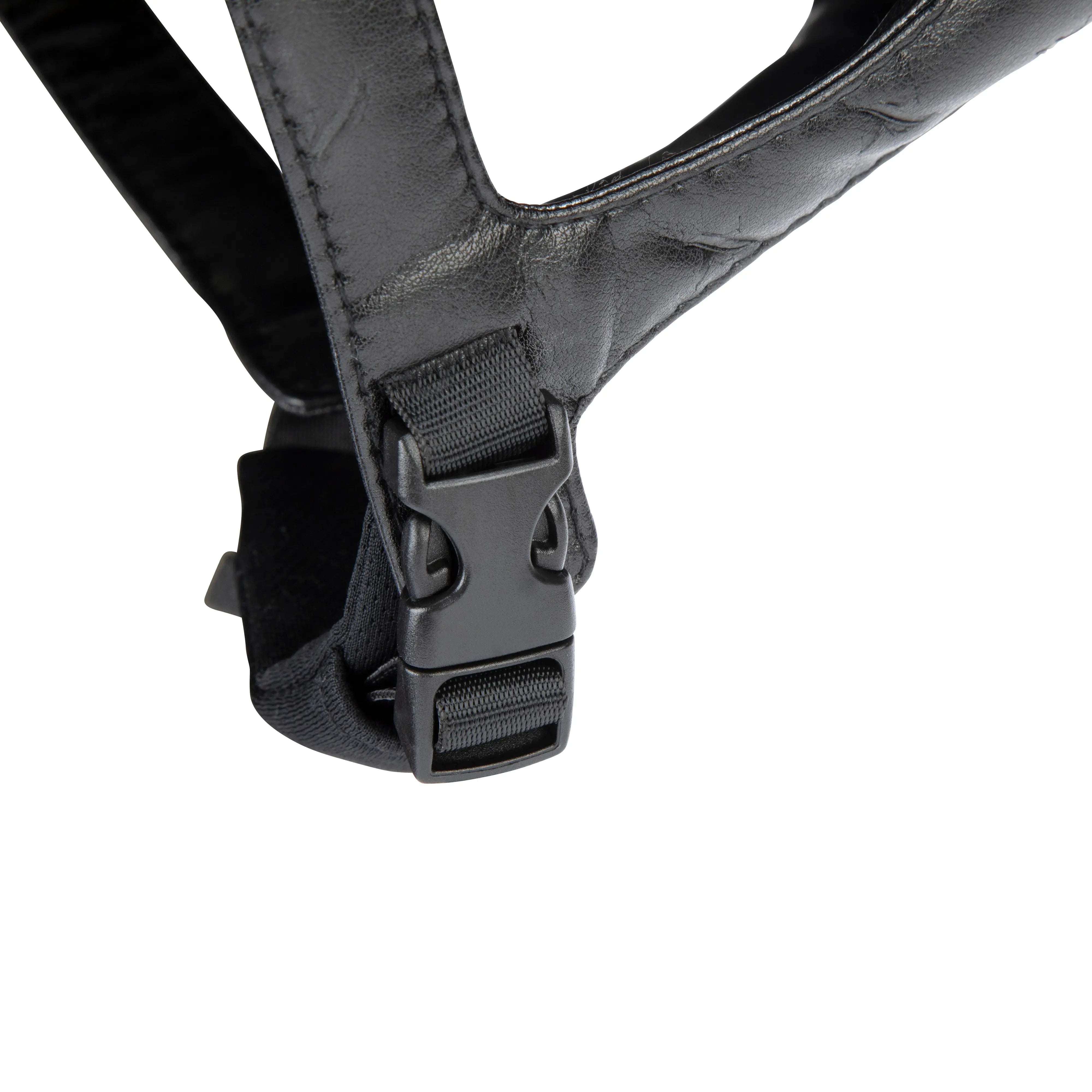 • Adjustable 4-Point Harness: Stretch-resistant webbing with soft faux leather-wrapped sides.