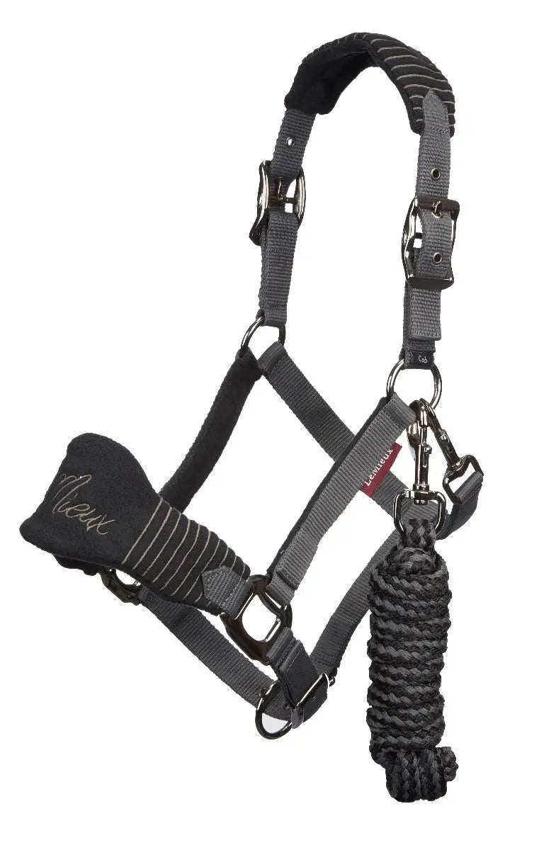 LeMieux Vogue Fleece Black / Grey Headcollar & Leadrope Set